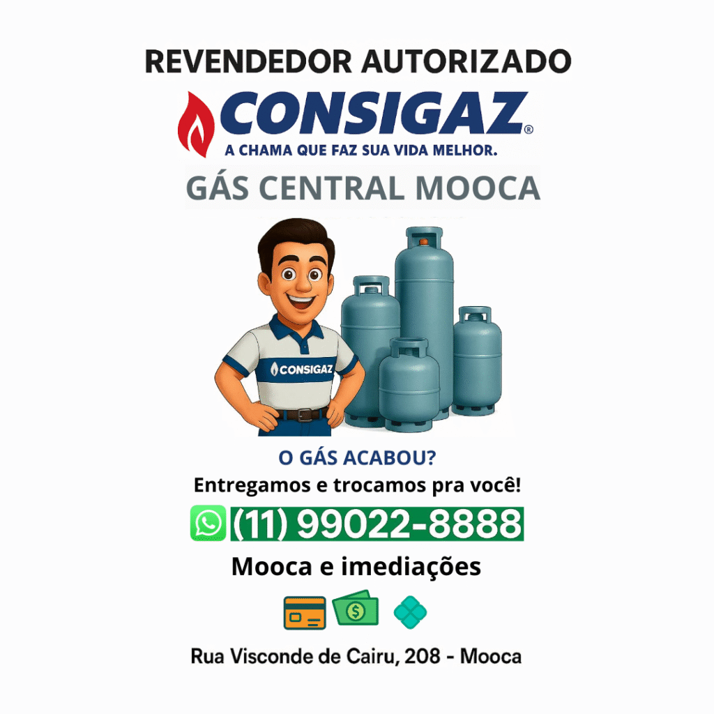 Revendedora autorizada consigaz, na Mooca, gás P13, P20, P45 produtos de qualidade consigaz e água mineral.